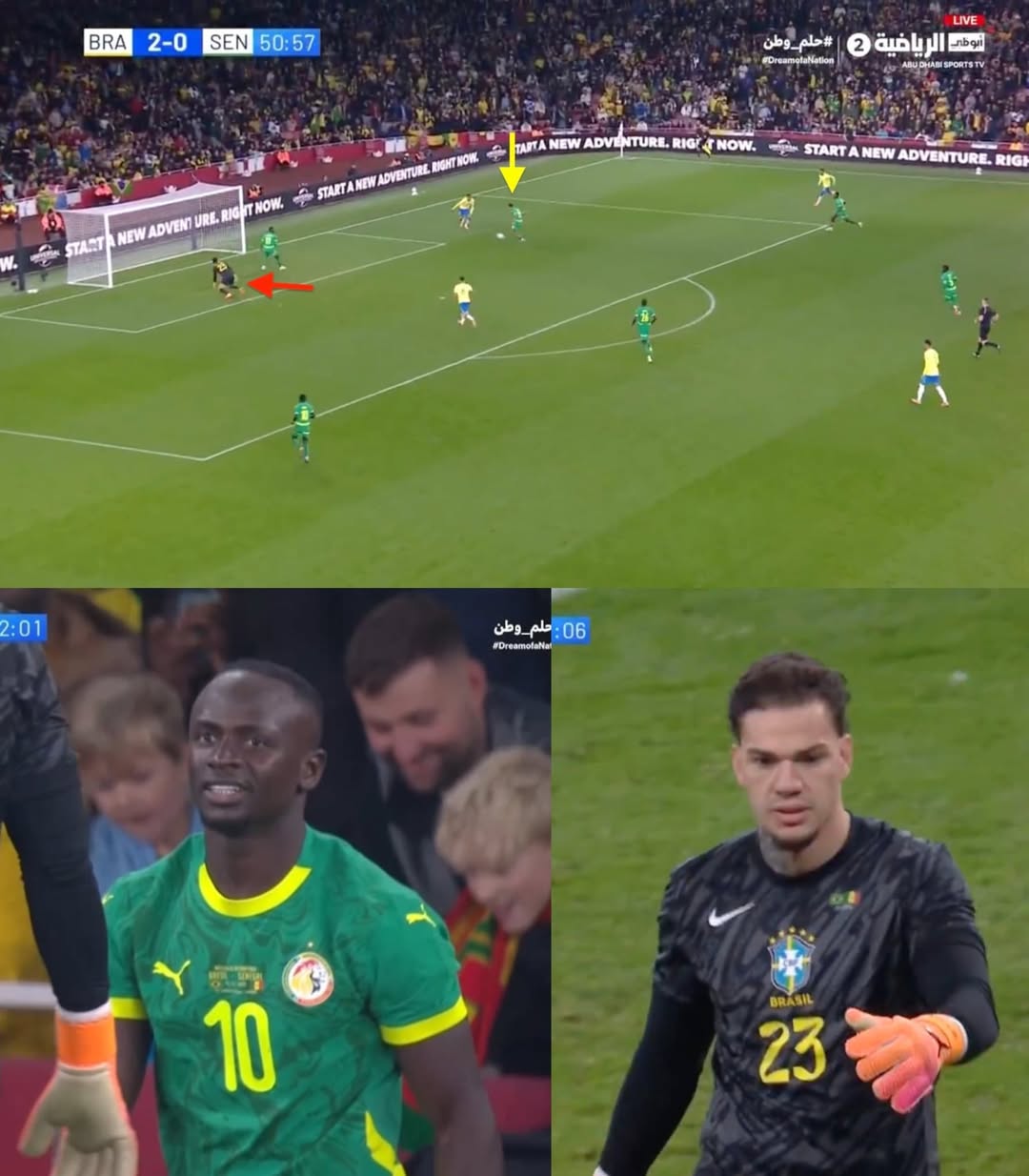 كان منتخب السنغال متأخراً 2-0 ويحتاج إلى هدف يعيدهم إلى أجواء المباراة. قام ماركينيوس بتمرير الكرة إلى إيدرسون، لكن ما حدث بعد ذلك كان صادماً للجميع! 😯