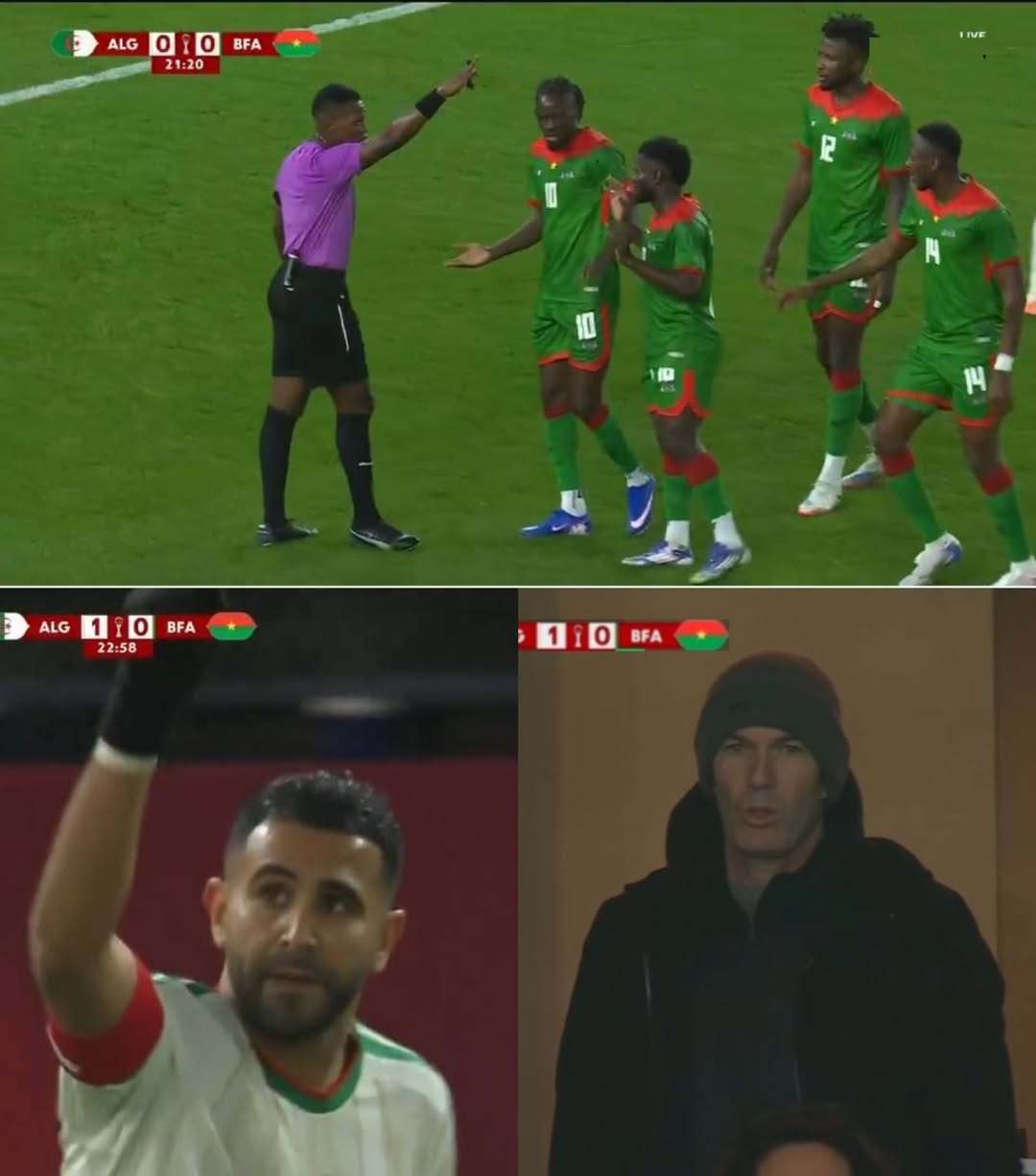 شاهدوا هدف رياض محرز الذي حسم نتيجة المباراة ومنح التأهل لمنتخب الجزائر أمام بوركينا فاسو. كانت لحظة ساخنة، حيث تعالت الأصوات وتزايدت الإثارة عند احتساب ركلة الجزاء. تدور أحداث المباراة بين ردود فعل قوية وعواطف متناقضة.