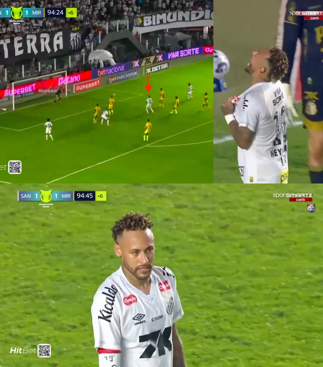 استلم نيمار الكرة داخل منطقة الجزاء، والجميع كانوا ينتظرون أن يعوض نيمار ضياع ركلة الجزاء السابقة. لقد كاد أن ينقذ فريقه من انتكاسة مؤلمة، ولكن ما حدث بعد ذلك كان صدمة للجميع.