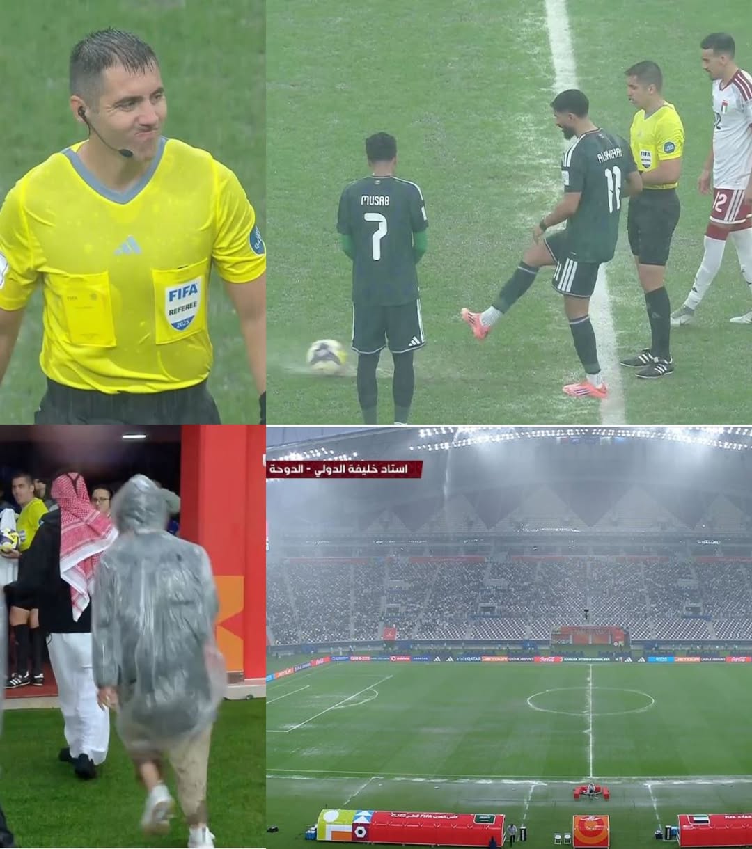 هروب لاعبي السعودية والإمارات وحكام المباراة بعد هطول الأمطار المفاجئ